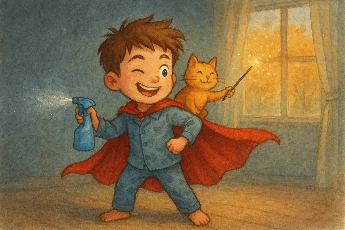 Можно побрызгать на монстра водой из пульверизатора с «волшебной» водой (добавьте капельку эфирного масла лаванды — это поможет ребёнку расслабиться перед сном).
