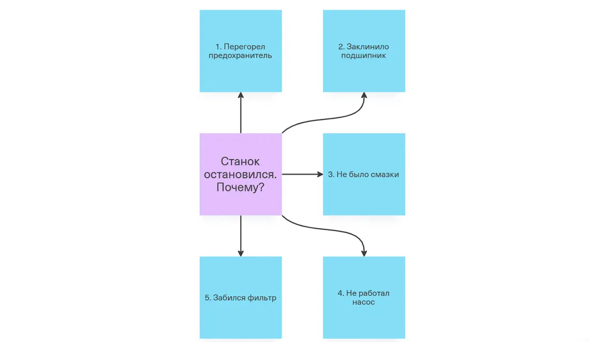 Пример из производства: проблема в том, что станок остановился. Почему?