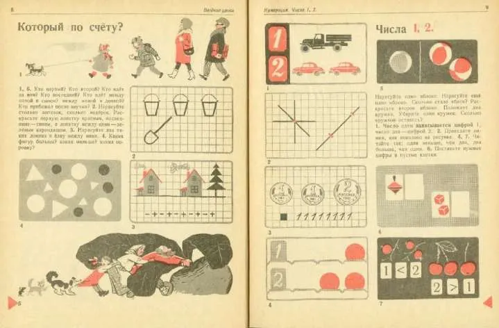Пробный тираж учебника «Математика» для 1 класса, созданного коллективом авторов под руководством М. И. Моро, вышел в 1966 году тиражом около 20 тысяч экземпляров и был рассчитан на работу в экспериментальных школах. А уже в 1967 году «Просвещение» выпустило учебник тиражом около 40 тысяч экземпляров. В этой редакции учебник был напечатан двумя красками — красной и чёрной: номера упражнений, связанных с введением нового материала, выделялись красным цветом, а в конце каждого урока ставился специальный знак, обозначающий его завершение.