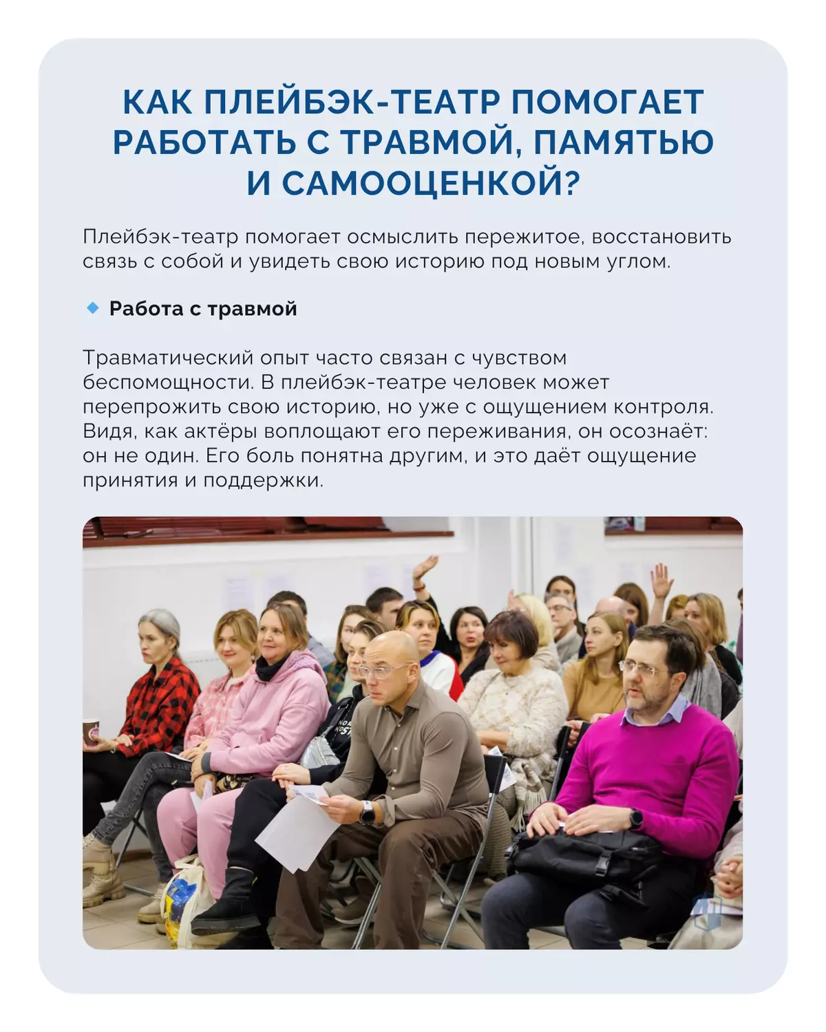 Не всегда легко рассказать о своих чувствах — особенно если есть страх осуждения. Плейбэк-театр создаёт безопасное пространство, где подростки могут выразить себя без страха быть непонятыми.