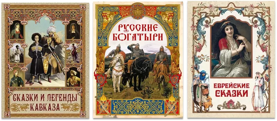 Изысканные подарочные издания: как классические «Русские народные сказки» и «Русские богатыри. Лучшие былины», так и более экзотические «Сказки и легенды Кавказа», «Волшебные сказки Китая», «Испанские сказки», «Лучшие сказки о феях, эльфах, гномах, троллях и других волшебных существа» и пр.