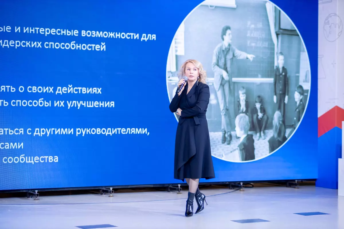 Глава АО «Просвещение» напомнила финалистам конкурса, что лидерство — это процесс социального влияния, благодаря которому лидер получает поддержку со стороны других людей, а также рассказала, как стать лидерами в сфере образования.