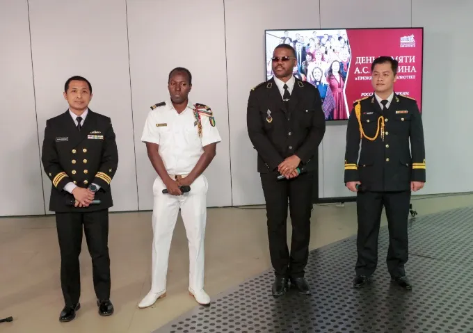 Участники также прочитали стихотворения поэта: наши соотечественники — на языках народов России, а иностранные студенты — на своих языках. Так, Марина Рачинская (в центре на фото) выступила со стихотворением «Буря мглою небо кроет» на хантыйском языке, председатель Вепсской общины Ленинградской области Владимир Етоев прочитал «Я помню чудное мгновенье» на вепсском языке, учитель чукотского языка Антонина Кчеусо — фрагмент поэмы «Руслан и Людмила» на чукотском, директор Центра традиционных знаний и языков коренных малочисленных народов Севера, Сибири и Дальнего Востока Нина Вейсалова — фрагмент «Сказки о рыбаке и рыбке» и стихотворение «Памятник» на эвенкийском.