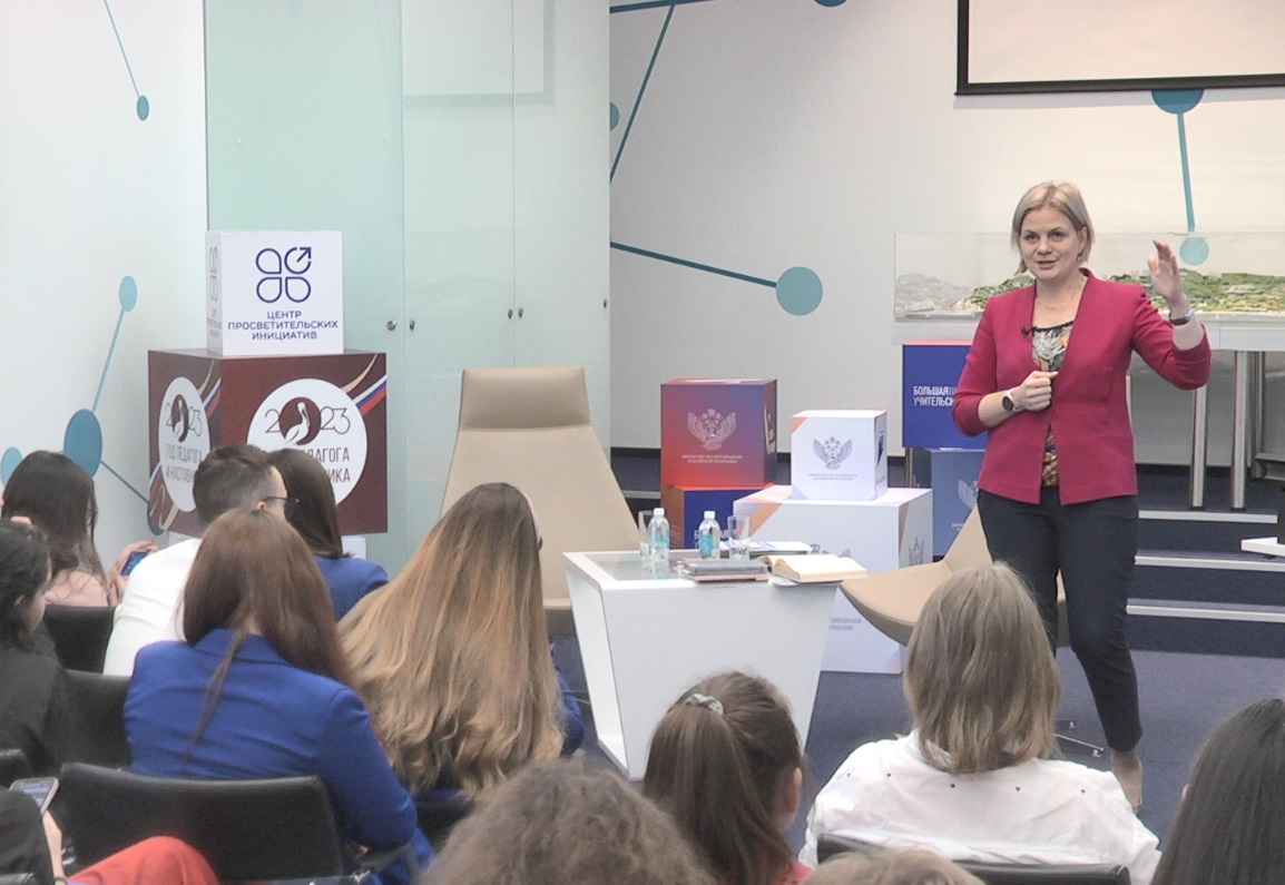 4-5 октября 2023 года Минпросвещения РФ совместно с подведомственным ему Центром просветительских инициатив провело «Собрание студентов — лидеров общественного мнения педагогических вузов» в стенах «Просвещения». На мероприятии собралось 50 человек из 37 педагогических вузов страны. Заместитель гендиректора издательства Ольга Жигалёва прочитала им лекцию «Как появляются новые и актуализируются действующие учебники и пособия».