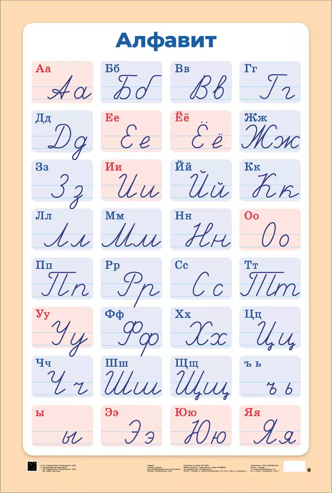 Перейти к описанию и характеристикамАлфавит (печатные и рукописные буквы русского алфавита). Демонстрационная таблица для начальной школы