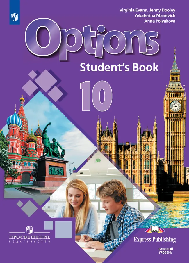 Учебник соответсвует ФГОС 2021 г. Учебник является центральным элементом учебно-методического комплекта серии «Мой выбор – английский!» (“Options”) для учащихся 10–11 классов общеобразовательных организаций, начинающих изучать английский язык в 5 классе в качестве второго иностранного языка. Отличительной особенностью УМК является модульное построение учебника, наличие аутентичного материала о России, заданий, постепенно готовящих к Единому государственному экзамену. Материалы учебника способствуют достижению личностных, метапредметных и предметных результатов обучения.