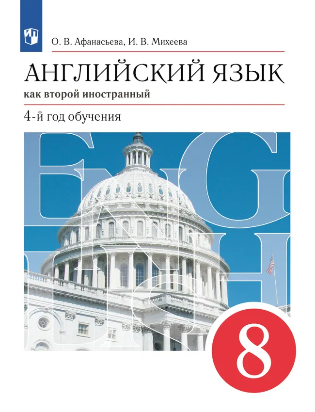 Учебник, созданный известными специалистами в области преподавания английского языка О. В. Афанасьевой и И. В. Михеевой, предназначен для учащихся 8 классов и является основным компонентом учебно-методического комплекта для четвертого года обучения, в который также входят две рабочие тетради, аудиоприложение и книга для учителя. Учебник соответствует Федеральному государственному образовательному стандарту основного общего образования.