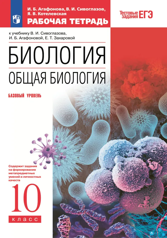 Предлагаемая тетрадь - часть учебного комплекса к учебнику В. И. Сивоглазова, И. Б. Агафоновой, Е. Т. Захаровой "Биология. Общая биология. Базовый уровень. 10 класс". Учебник соответствует Федеральному государственному образовательному стандарту среднего (полного) общего образования.