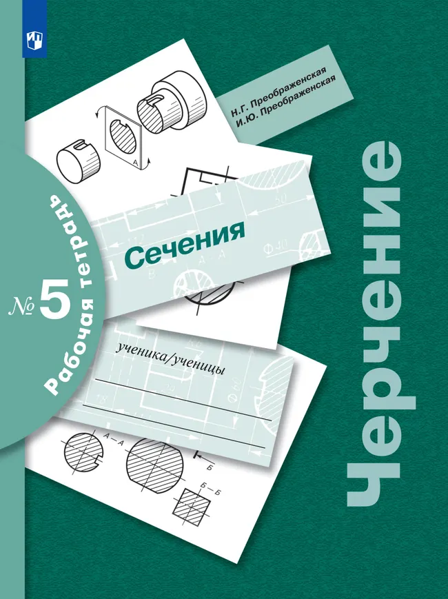 Рабочая тетрадь № 5 предусматривает повторение пройденного ранее материала и изучение процесса образования сечений, их выполнение и обозначение на чертежах.
