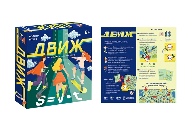 Построен самый быстрый путь… к знаниям! «Движ» — захватывающая гонка, которая наглядно показывает связь между расстоянием, скоростью и временем. Формула S = V ∙ t оживает на глазах и остаётся на кончиках пальцев, пока игроки трогают и передвигают компоненты.