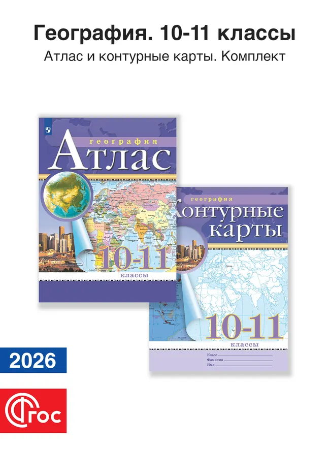 География 10-11 классы. Комплект атлас и контурные карты. Традиционный комплект. ФГОС. 2026