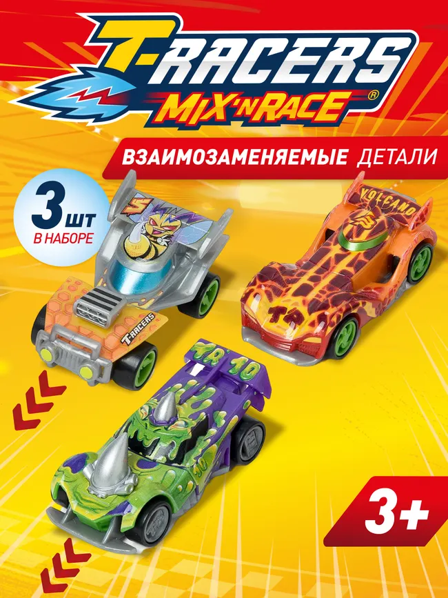Набор T-RACERS MIX 'N RACE – это три крутых гоночных болида, которые ты можешь разобрать и собрать заново по своему желанию! Каждая из 3 машинок конструктивно состоит из 6 частей: 4 свободно вращающихся колеса и 2 элемента прочного корпуса. Все детали в наборе полностью взаимозаменяемы между машинами. Материал – ударопрочный, безопасный ABS-пластик ярких цветов. Игрушка предназначена для детей ...