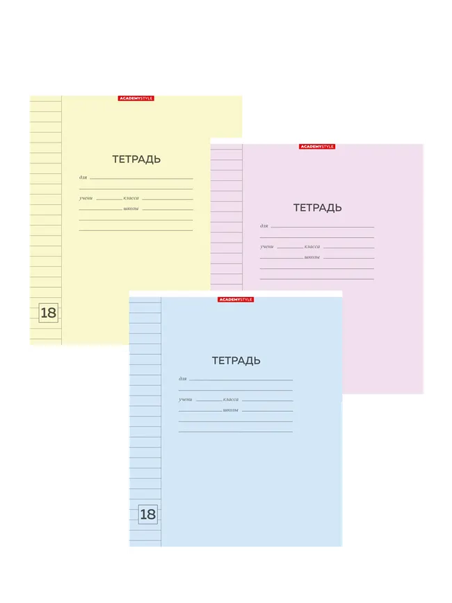 Тетради в линейку 18 листов отлично подходят для учебы. Тетради изготовлены из бумаги повышенной плотности – офсет 60г/м², 92% белизна, красочность блока 2 краски. Обложка из мелованного картона защитит листы от замятий, плотность - 190 г/м2, красочность обложки 4+0 + ВД лак. Тетради поставляются комплектом из десяти штук, цвет обложек – желтый, голубой и розовый. Количество листов: 18; Линовка: линия с полями; Формат тетради: А5 (165*205 мм); Крепление: скрепка; Материал обложки: мелованный картон. Количество тетрадей в комплекте: 10 шт.
