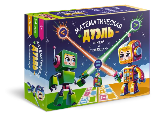 В классе робототехники устроили соревнование, кто создаст робота, который лучше всех считает. Четыре команды весь день старательно собирали и программировали роботов. А чтобы определить победителя, решили устроить математическую дуэль! Роботы сошлись в отчаянной схватке за звание лучшего математика. Они сражаются числами и считают быстро и точно! Лучшим математиком может стать только один из них. Математическая дуэль — битва не для слабых духом! Выбери своего робота и приведи его к победе.