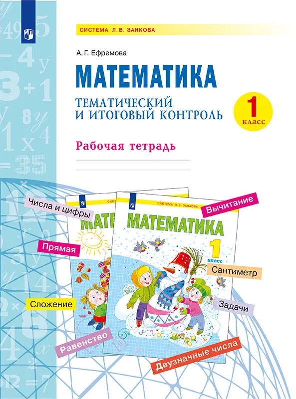 Рабочая тетрадь относится к УМК «Математика» 1 класс (авторы И. И. Аргинская, Е. П. Бененсон, Л. С. Итина, С. Н. Кормишина) системы развивающего обучения Л.В. Занкова и позволяет проверить освоение учащимся учебного материала по всем темам первого класса. Пособие включает 8 тематических проверочных работ, а также 4 срезовые работы за каждую четверть и итоговую работу за год. Каждая работа представлена в 2 вариантах и состоит из 7–8 заданий. Звёздочкой отмечены задания повышенного уровня сложности. Тетрадь можно использовать с любыми другими УМК, если выбирать для работы только обязательные для контроля темы.