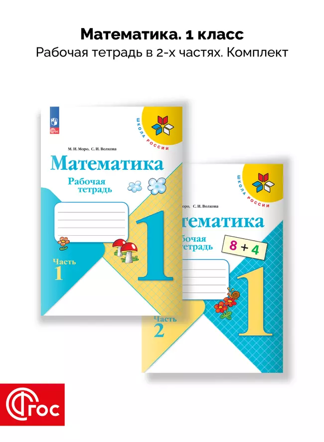 Комплект рабочих тетрадей из двух частей для 1 класса. ФГОС. Серия «Школа России». Рабочая тетрадь по математике для 1 класса (в 2 частях) подготовлена к учебнику «Математика. 1 класс» (авт. М. И. Моро, С. И. Волкова, С. В. Степанова), доработанному в соответствии с требованиями Федерального государственного образовательного стандарта начального общего образования (Приказ Министерства просвещения ...