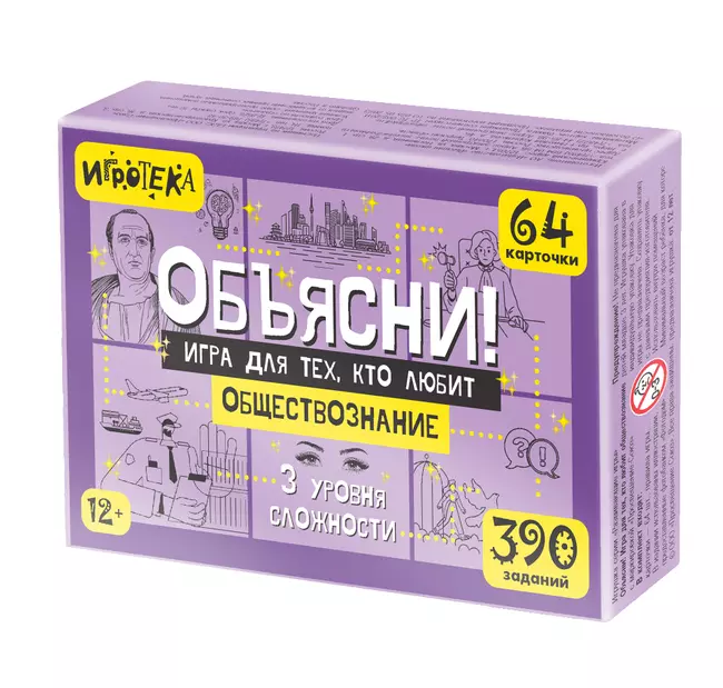 Увлекательная игра «Объясни! Игра для тех, кто любит обществознание» создана победителем конкурса «Учитель года России – 2018» Алиханом Динаевым. На 64 игровых карточках написаны задания по обществознанию трёх уровней сложности. Участники игры объясняют друг другу слова, среди которых актуальные термины и понятия, имена известных учёных и общественных деятелей. Отгадывая их, они набирают очки, сор...