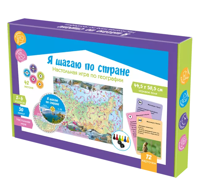 Проверьте свои знания по географии России и узнайте, какие интересные географические объекты находятся на территории нашей страны. Игра рассчитана на количество игроков от 2 до 6 и предназначена для детей и взрослых в возрасте от 9 до 99 лет.