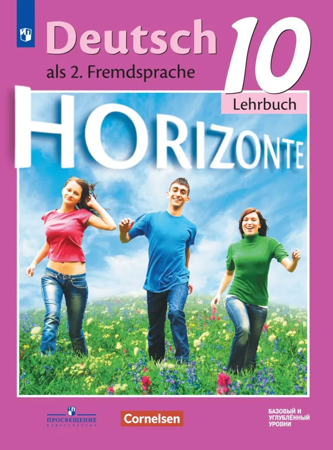 Содержание электронной формы учебника соответствует по структуре, содержанию и художественному оформлению печатной форме учебника на дату ее публикации (размещения на сайте) 05.08.2022 Электронная форма учебника для 10 класса серии «Горизонты» предназначена для школ с изучением немецкого языка как второго иностранного на базовом и углублённом уровнях. Серия «Горизонты» — это совместный проект издательства «Просвещение» и издательства Cornelsen (г. Берлин). Материал рассчитан на два часа в неделю и более. Современная лексика, живые ситуации общения, проектная работа дают возможность учителю проводить уроки с максимальной эффективностью в группах с любым уровнем обученности. Также в учебнике представлены задания по подготовке к итоговому контролю в формате ЕГЭ. В конце каждой второй главы размещён блок «Готовимся к экзамену». Материалы учебника дают возможность учащимся выработать индивидуальную эффективную стратегию подготовки к сдаче ЕГЭ.