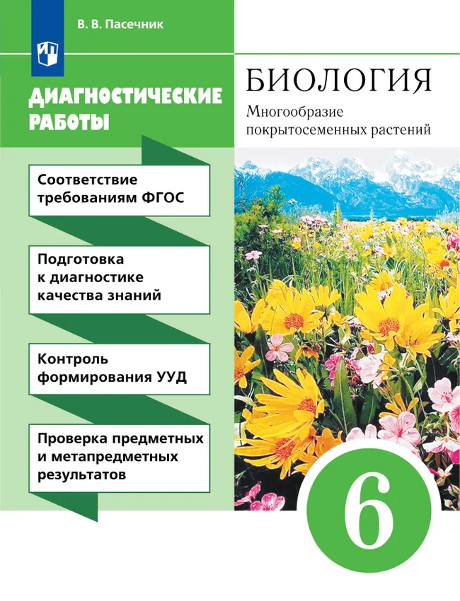 Диагностические работы являются частью учебного комплекса В.В. Пасечника «Биология. Многообразие покрытосеменных растений. 6 класс». Пособие предназначено для организации тематического и итогового контроля предметных и метапредметных результатов обучения биологии в 6 классе.