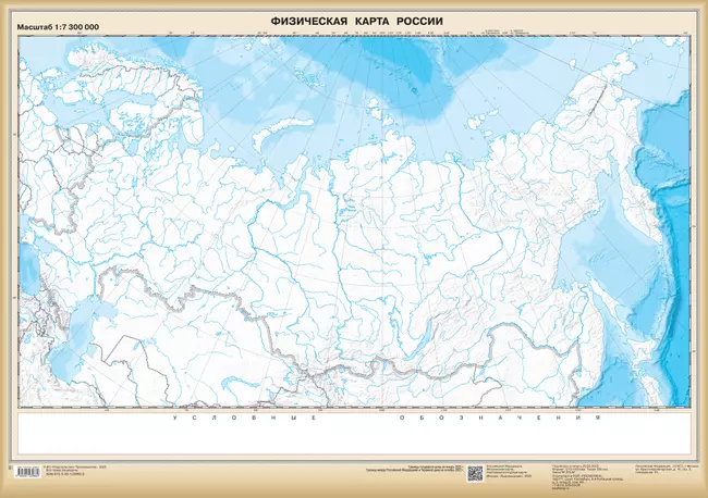 Настенная контурная карта «Физическая карта России» размером 121х85 см (масштаб 1:7 500 000), представляет собой превосходное дополнение для образовательного процесса на уроках географии.