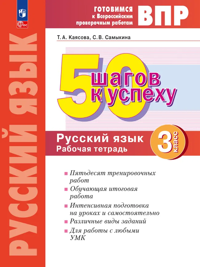 Рабочая тетрадь «ВПР. 50 шагов к успеху. Русский язык. 3 класс» пред назначена для подготовки третьеклассников к итоговым контрольным работам за год, а также к Все российской проверочной работе (ВПР) по русскому языку в начальной школе. В каждой из пяти десяти работ предлагаются вопросы и задания, охватывающие 5–6 тем курсами русского языка, что отличает эту тетрадь от других аналогичных изданий, построенных на повторении ранее изученного материала по тематическому принципу. В связи с тем, что в ВПР по русскому языку включены так же задания по развитию речи и работе с текстом, в предлагаемой тетради кроме тренировочных работ по русскому языку помещены работы, направленные на отработку умений по определению темы и идеи текста, составлению его плана, подбору заголовков, работе с лексикой. Тренировочные работы рассчитаны на выполнение в классе под руководством учителя на уроках русского языка и литературного чтения.