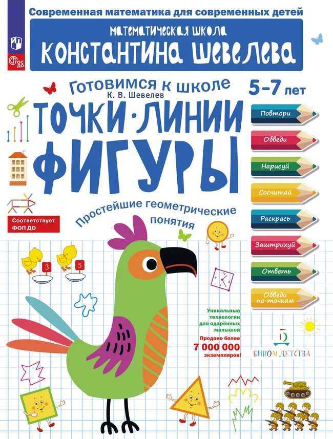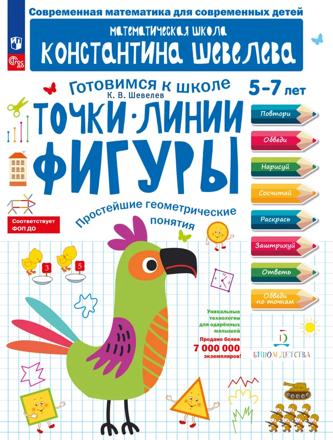 в комнате у нас какой? А на кухне? А в детской? А книжка какой формы?» Таким образом его стихийные представления о геометрических формах будут закрепляться. Задача этой книжки как раз и состоит в том, чтобы помочь ребёнку уточнить, упорядочить и систематизировать первоначальные геометрические представления (точка, прямые, кривые, ломаные и замкнутые линии, луч, отрезок, треугольник, круг, квадрат).