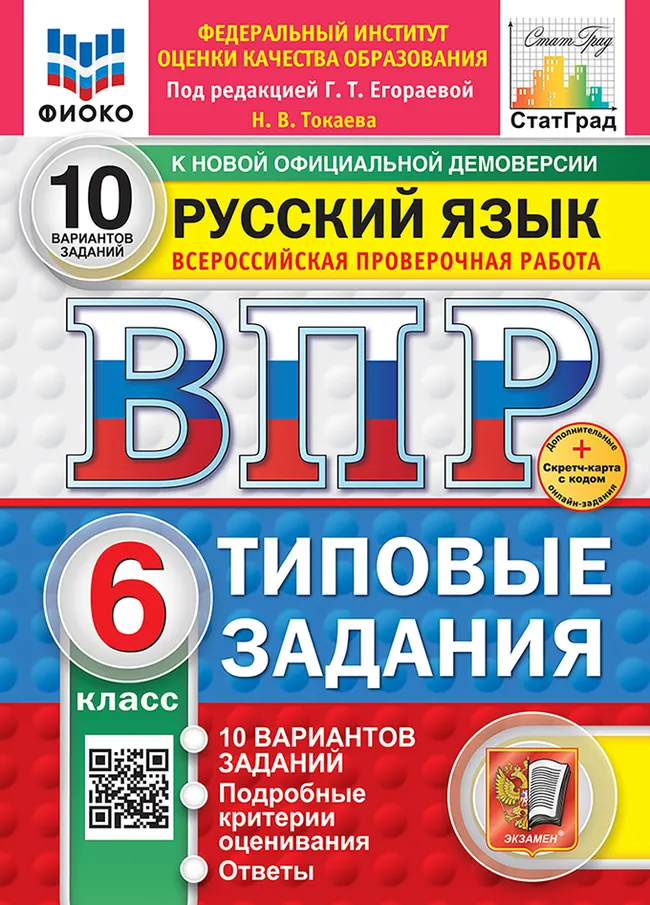 Перейти к описанию и характеристикамВПР. ФИОКО. СТАТГРАД. Русский язык. 6 класс. 10 вариантов. Типовые задания. ФГОС новый + Sc.